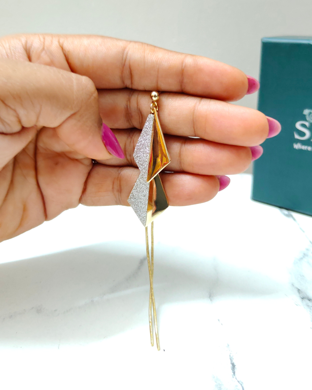 Step into elegance that lingers. These golden rhombus hangings aren’t just earrings—they’re a statement of confidence, charm, and grace. Every sway catches the light and the eyes around you, making you feel unforgettable. Whether it’s a celebration, a night out, or just a moment to shine, these drops are designed to make you the highlight of every room.